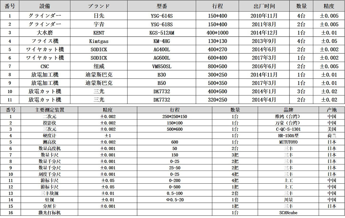 瀚川現(xiàn)在的加工設(shè)備及檢測(cè)裝置: